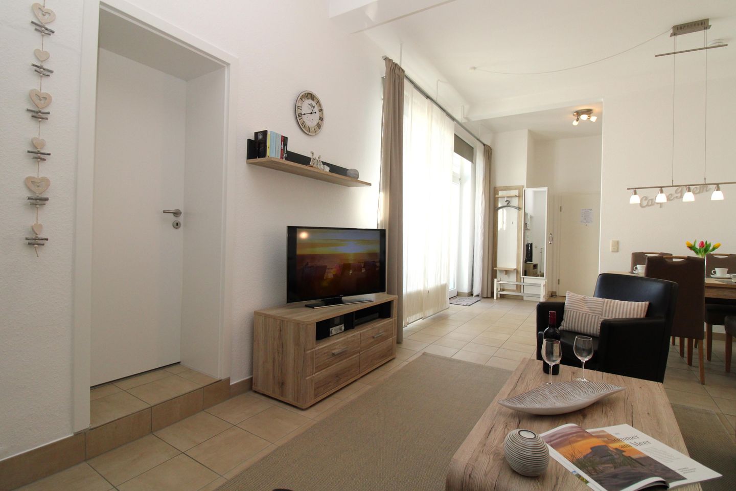 Das strandnahe, moderne und helle 3-Zimmer-Appartement 225 (ca. 57 m²) im 3. Obergeschoss im Haus A (ohne Fahrstuhl) besitzt ein hohes Maß an Wohlfühlkomfort und ist komplett eingerichtet. Der Bodenbelag in den 2 Schlafzimmern ist hochwertiger Vinyl-Designbelag in edler Holzoptik, der Eingangsbereich, das Wohn-/ Esszimmer, der Küchenbereich sowie das Bad / WC sind gefliest.