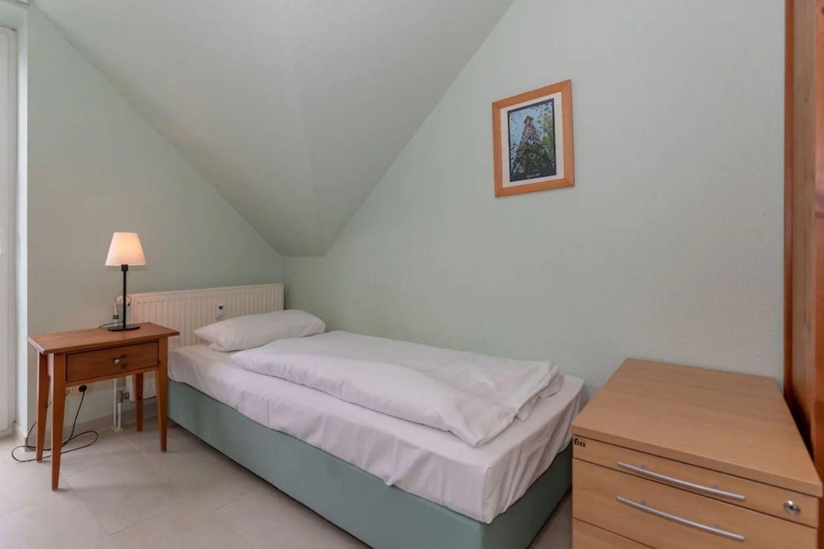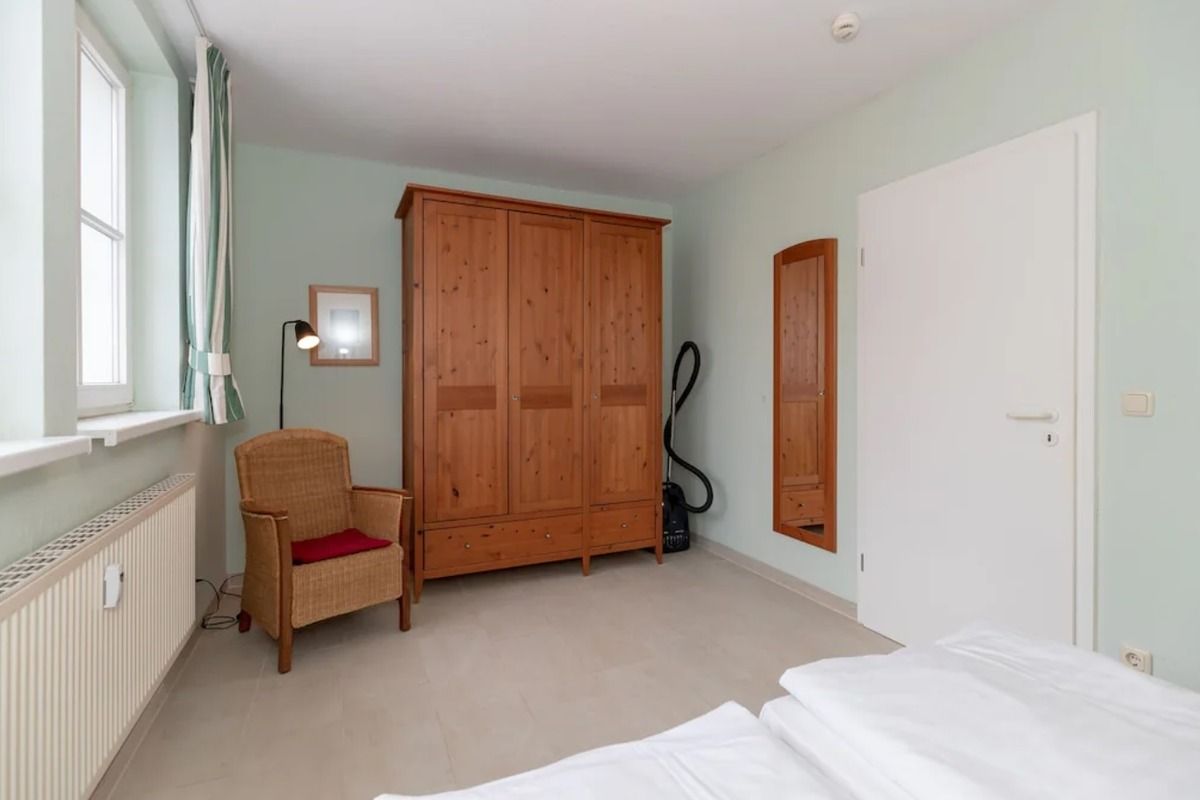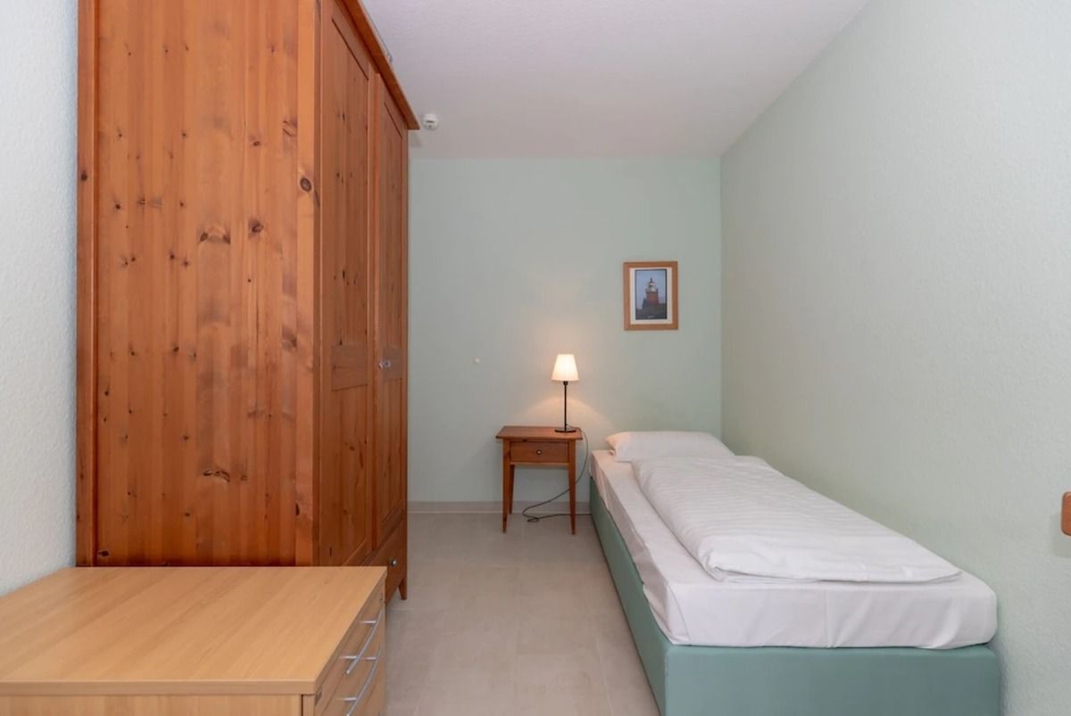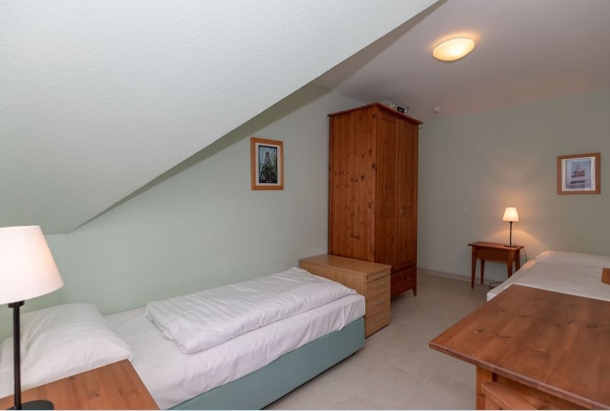 Das separate und zusätzliche 2. Schlafzimmer verfügt ebenfalls über 2 getrennte Einzelbetten (90 cm x 200 cm), Nachttische mit Nachttischlampen, einen geräumigen Kleiderschrank sowie einen kleinen Tisch mit 2 Stühlen.