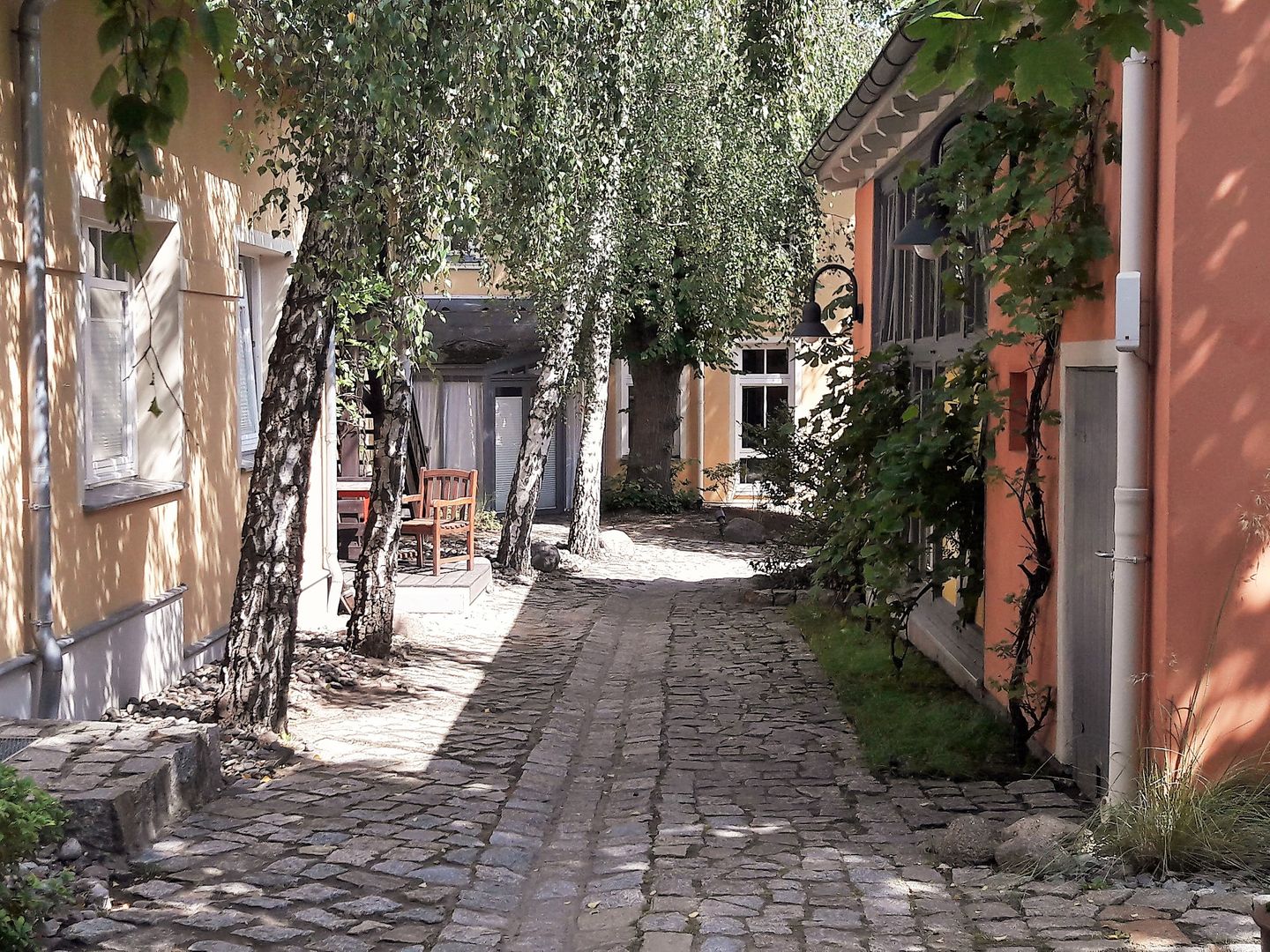 Der Wohn-/Essbereich verfügt über eine separate Sitzgruppe mit bequemer Couch und Couchtisch, einen separaten Esstisch mit Stühlen sowie verschiedene Regale. Vom Wohnzimmer aus haben Sie direkten Zugang zu der kleinen und sonnigen Terrasse (nach Süden ausgerichtet) zum Innenhof der Wohnanlage mit Terrassenmöbeln. Hier sitzen Sie entspannt und gemütlich im Grünen und können abends bei einem guten Glas Wein in Ruhe die lauen Sommernächte genießen! Ein gemeinschaftlicher Außengrillplatz im Innenhof der Wohnanlage bietet Ihnen die Möglichkeit zum Grillen.